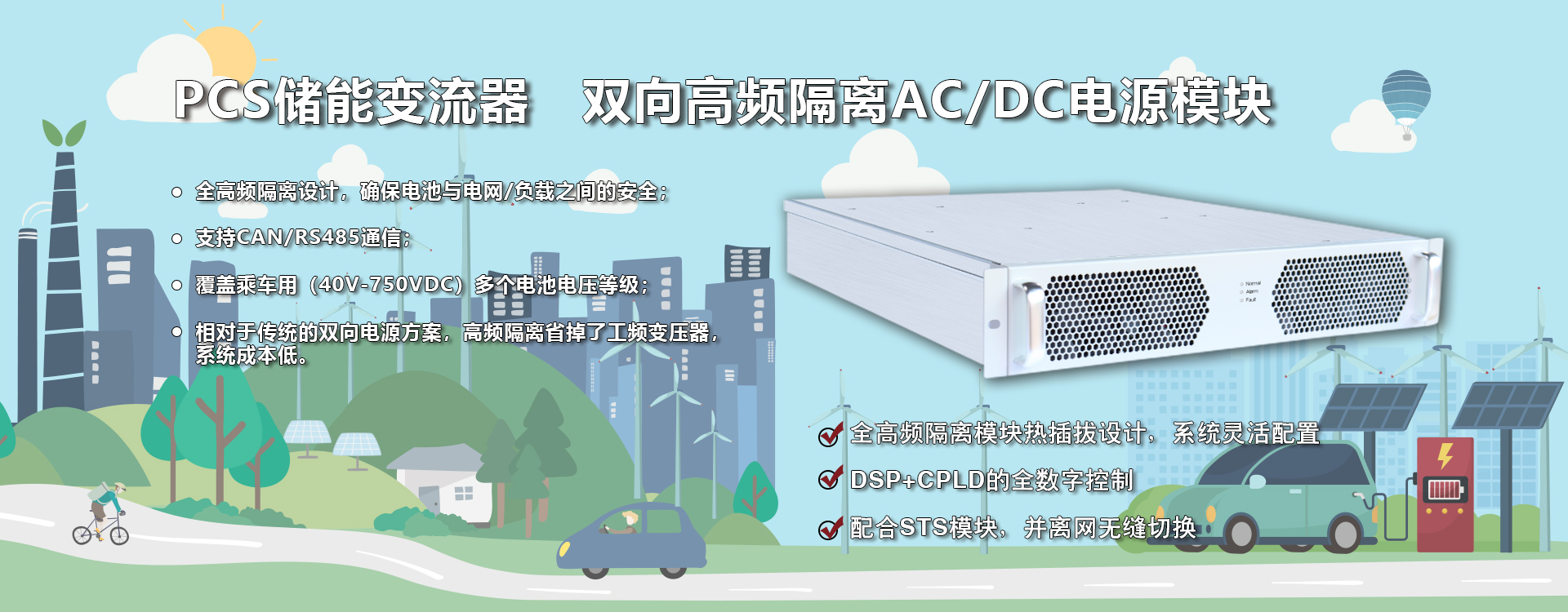專(zhuān)為中小型工商業(yè)儲(chǔ)能系統(tǒng)量身打造的模塊化變流器產(chǎn)品,支持并網(wǎng)、離網(wǎng)運(yùn)行。該模塊支持雙向能量流動(dòng)、超寬范圍電池電壓,可與不同類(lèi)型電池搭配使用,滿(mǎn)足不同應(yīng)用場(chǎng)景的需求